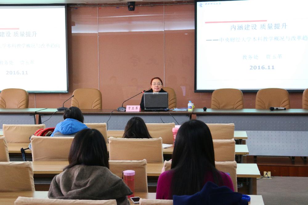 在第一个培训环节中,贾玉革处长首先介绍了我校教务处科室设置和职能分工,并系统讲解了2008年教育部本科教学评估后建立起来的教学管理制度体系、包括本科教学工作总体情况、本科教学管理、专业设置相关制度及本科教育教学改革等内容;接着贾老师向新教工们展示了我校教学工作的发展平台与项目资源,例如精品课程建设项目、课程教学团队建设项目、优秀教学成果奖、青年教师教学基本功比赛等等;最后贾老师还简单阐述了未来教育教学改革的趋向。