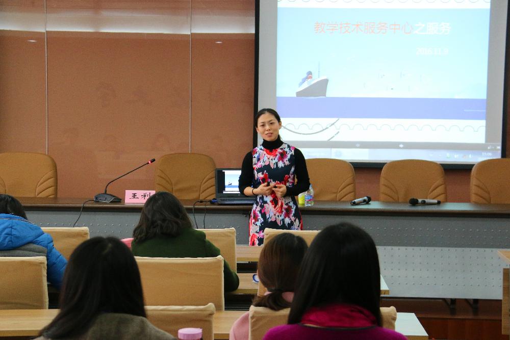 在培训的第二个环节,为了让新教工们尽快熟悉我校多媒体资源分布,充分利用各类教学技术提高授课水平,教学技术服务中心王利老师为大家介绍了两校区的教室多媒体设备、实验室教学设备、数据终端以及虚拟教学平台,讲解了教学技术资源在两校区的分布情况,并通过分析当代学生作为“互联网原住民”的成长背景,向大家强调了教学技术与时俱进的必要性,鼓励新教工们积极尝试使用新设备、新技术。